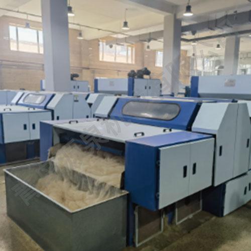 本機(jī)開松由雙錫林排列,一輥筒軟開,二輥筒精開。工作輥與撥毛輥結(jié) 合錫林滾筒可達(dá)到開松梳理出單纖維且蓬松狀態(tài)的動物纖維。后輥筒部 分有去粗、去雜效果;分梳行業(yè)為最前道工序,效果突出,是聯(lián)合梳理 機(jī)必備產(chǎn)品之一。
