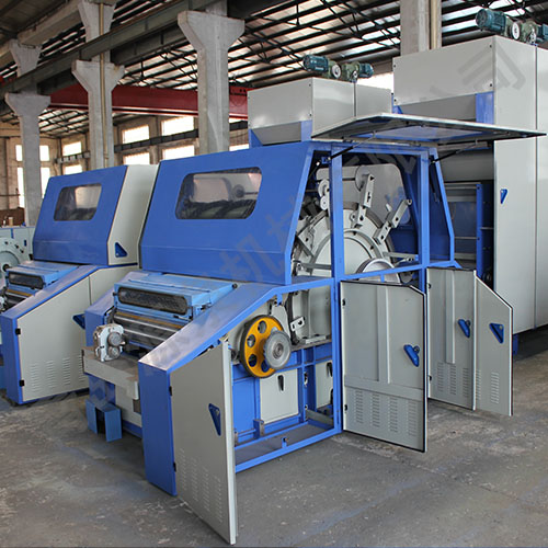 本機(jī)主要適用于山羊絨、兔絨、牦牛絨、蠶絲、化纖等散纖維,適紡纖維長(zhǎng)度為16-80mm。將電子稱(chēng)重喂毛機(jī)均勻送來(lái)的纖維層進(jìn)行開(kāi)松和梳理,使所有呈卷曲,塊狀的纖維理成基本伸直的單纖維狀態(tài),后經(jīng)剝網(wǎng)圈條供后道工序使用。