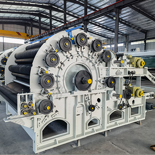 本機(jī)采用四羅拉喂入結(jié)構(gòu),適應(yīng)滌綸、丙綸等化學(xué)纖維也適應(yīng)部分天然纖維的梳理成網(wǎng)。鑄鐵機(jī)架圓墻板,結(jié)構(gòu)穩(wěn)定;鈑金罩殼激光下料數(shù)控折彎,采用封閉式防護(hù)罩,有機(jī)玻璃視窗,美觀大方,罩殼氣缸升降,方便安全。